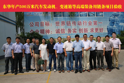 驗(yàn)收組一行到現(xiàn)場考察了公司“年產(chǎn)500萬米汽車發(fā)動(dòng)機(jī)、變速箱等高端裝備用鏈條”生產(chǎn)線及企業(yè)相關(guān)生產(chǎn)設(shè)備,參觀了產(chǎn)品樣品室。在會議室聽取了劉冬根代表項(xiàng)目組所作的項(xiàng)目內(nèi)容匯報(bào)、相關(guān)單位的驗(yàn)收報(bào)告、中央專項(xiàng)投資財(cái)務(wù)審計(jì)報(bào)告等,經(jīng)過浙江大學(xué)、浙江省機(jī)電設(shè)計(jì)院等高等院校5名院長、教授組成的專家組現(xiàn)場提問、查看相關(guān)資料等,最終一致同意通過驗(yàn)收。