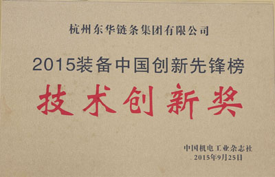 2015年,由中國(guó)機(jī)械工業(yè)聯(lián)合會(huì)指導(dǎo),《中國(guó)機(jī)電工業(yè)》雜志社主辦的2015“裝備中國(guó)創(chuàng)新企業(yè)年會(huì)”暨“裝備中國(guó)創(chuàng)新先鋒榜”頒發(fā)了創(chuàng)新榜樣獎(jiǎng)、產(chǎn)品創(chuàng)新獎(jiǎng)、管理創(chuàng)新獎(jiǎng)、營(yíng)銷創(chuàng)新獎(jiǎng)、綠色創(chuàng)新獎(jiǎng)、技術(shù)創(chuàng)新獎(jiǎng),有50多位獲獎(jiǎng)企業(yè)代表在此共享榮耀。東華集團(tuán)曾于2013年獲得該獎(jiǎng)項(xiàng)。