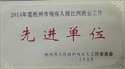 日前,公司被杭州市人民政府殘疾人工作委員會授予“2014年度杭州市殘疾人按比例就業工作先進單位”榮譽稱號。這是公司長久以來積極安置殘疾人就業,從根本上解決殘疾人貧困現狀,改善殘疾人的生活,勇擔社會責任的一份榮耀。
