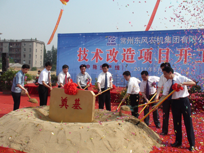 5月20日上午,常州東風(fēng)農(nóng)機(jī)集團(tuán)有限公司 “月產(chǎn)6500臺(tái)輪拖零部件能力技改”等3個(gè)技改項(xiàng)目舉行奠基典禮,拉開了東風(fēng)農(nóng)機(jī)“十二五”新一輪大發(fā)展的序幕。鐘樓區(qū)委書記徐偉南、區(qū)長潘冬鈴、東風(fēng)農(nóng)機(jī)董事長宣碧華等領(lǐng)導(dǎo)出席了奠基典禮。