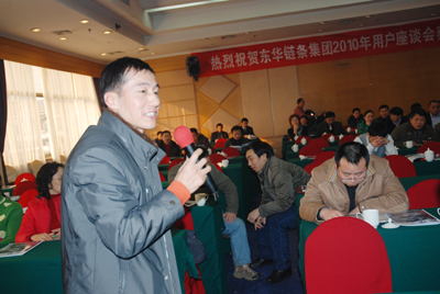 座談會后,東華中高層及銷售人員與廣大經銷商、用戶代表就質量、交貨期、價格、運輸等方面存在的問題進行了分組交流,廣泛聽取了大家的意見和建議。期間,廣大經銷商、用戶代表對位于余杭經濟開發區東華的新區和南、北廠區中新建的國內一流鏈條生產基地及先進的工藝、工裝水平給予了高度評價。