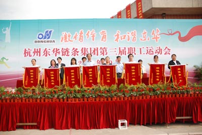 閉幕式上,總經理張世強、工會主席魯小林等高層向運動員頒獎并合影留戀。最后,張總作了熱情洋溢的講話,希望廣大員工在企業繼續發揚更快、更強、更高的體育精神,團結奮斗,早日把東華集團打造成世界一流鏈傳動企業。 記者 李春妹