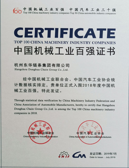 近日,中國機械工業聯合會、中國汽車工業協會聯合發布了2018年中國機械工業百強、汽車工業三十強企業名單。我公司連續四年躋身中國機械工業百強榜,排名第59位,也是中國鏈傳動行業唯一上榜企業。