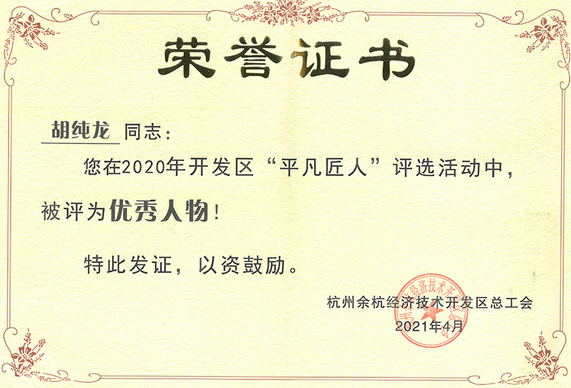繽紛四月,東華鏈條集團(tuán)傳動(dòng)鏈?zhǔn)聵I(yè)部員工胡純龍被余杭經(jīng)濟(jì)技術(shù)開發(fā)區(qū)總工會(huì)授予2020年“平凡匠人”稱號(hào),這又是一次對(duì)他在平凡崗位上做出不平凡工作的認(rèn)可!
