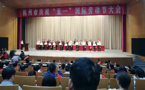 4月26日,杭州市慶祝“五一”國際勞動節大會在杭州市職工文化中心舉行,市人大常委會副主任、市總工會主席鄭榮勝、市“五一”勞動獎章(獎狀)獲得者、各級工會干部和職工代表500余人參加會議。東華員工徐長明被授予杭州市“五一”勞動獎章。