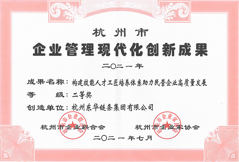 集團《構建技能人才工匠培養體系助力民營企業高質量發展》獲評2021年杭州市企業管理現代化創新成果二等獎。