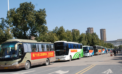 今年春節(jié)前夕,公司根據(jù)前期報名統(tǒng)計,共組織9輛大巴車送300多名員工返鄉(xiāng)過春節(jié),主要發(fā)往安徽、河南、湖南、江西、湖北等多個員工家鄉(xiāng)聚集省市。每輛車上安派了乘車長,定時定點向公司報平安。同時為職工準備了暈車藥、飲用水和喜慶的春聯(lián),為他們的返鄉(xiāng)之旅增添了不少溫暖。