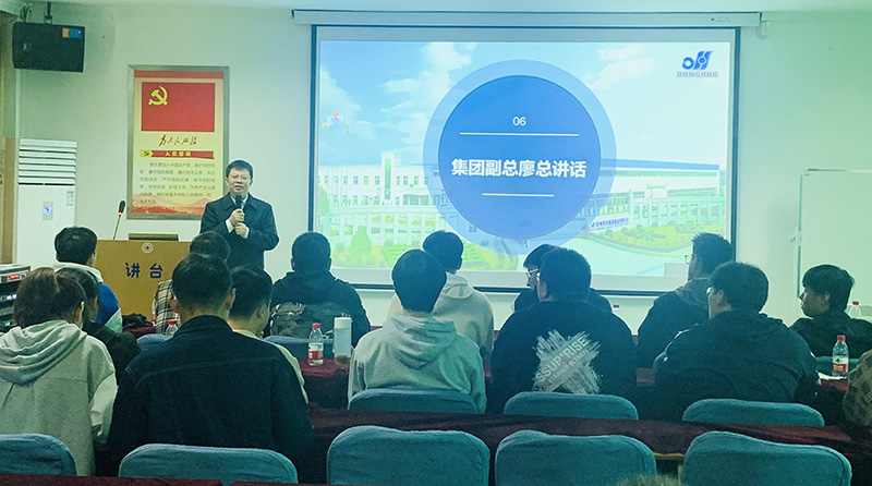 最后,集團副總經理廖杭州講話。首先肯定了大學生們日益適應和進步的表現;其次要做好平凡的工作,在怎么干上創新;最后要學會堅守,提高效率與競爭力,在企業平臺和崗位賽道上實現個人價值和企業目標。
