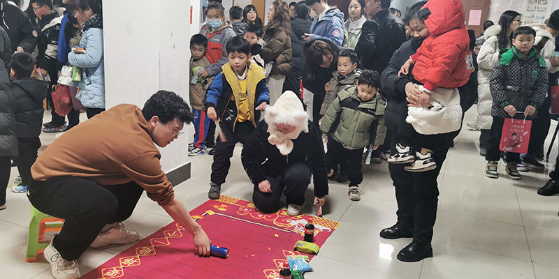 在公寓職工活動室,到處高掛著喜慶的燈籠,洋溢著節日的氛圍。公司各事業部、職能部門共12個分工會分別設置游戲節目,不僅有元宵節傳統的猜燈迷、投壺、飛鏢、套圈、投沙包等,也有新意的倒著說、掌上明珠、財源滾滾、摸彩珠等豐富多彩的小節目?,F場隨處可見員工們帶著孩子一起參加活動,他們互相合作,協調配合完成各種游戲活動,大大增進了親子之間的互動交流。