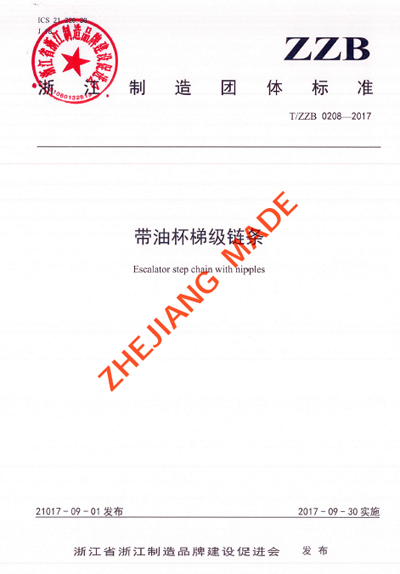 T/ZZB 0208—2017是一項鏈傳動產(chǎn)品的團體標準,是鏈傳動行業(yè)的首項“浙江制造”團體標準。浙江恒久機械集團和吉林大學鏈傳動研究所兩家單位參加了該標準的起草,這項標準自2017年9月30日起開始實施。