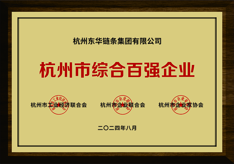東華鏈條榮登“2024杭州市綜合百強(qiáng)企業(yè)”榜第59位。