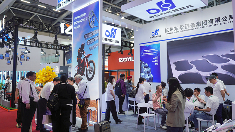 廣交會上,東華鏈條集團重點主推戰(zhàn)略級新品“X3系列高端滾子鏈條”,展現(xiàn)精密制造硬實力;再推傳統(tǒng)優(yōu)勢領(lǐng)域的“農(nóng)機鏈條、扶梯鏈條、物流輸送鏈條、不銹鋼食品鏈、提升設(shè)備鏈”等;重點展出了“高端摩托車鏈”,響應(yīng)公司“摩鏈再出發(fā)”發(fā)展新戰(zhàn)略。其中,“叉車用高強度板式鏈”采用精準(zhǔn)工藝控制,抗拉強度提升60%以上,適配1噸至50噸級叉車嚴(yán)苛工況,現(xiàn)已批量配套全球頭部叉車品牌;“堆高機專用鏈條”?通過優(yōu)化工藝設(shè)計,實現(xiàn)疲勞壽命提升1倍以上,滿足港口設(shè)備對高疲勞、高強度及穩(wěn)定性的需求?;針對礦山、港口等場景開發(fā)的“重載型鏈條”?,單鏈節(jié)承重可達3000kg,已成功應(yīng)用于“一帶一路”沿線大型基建項目?。