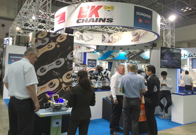 本次展會,東華鏈條集團積累了前幾次參展的經驗,不僅展出了各種常規標準鏈,還分別展出了三家公司的優勢產品,如:東華分動箱鏈條、日本EK公司最新研發的3D摩鏈、德國KOBO公司生產的扶梯鏈、汽車鏈條等。展會還特別展示了裝有分動箱鏈條的分動箱裝置及裝有日本EK公司生產的摩鏈的TRIUMPH摩托車,吸引了大量各國參展客戶的觀摩與青睞,這也預示著東華鏈條正朝著高、精、尖鏈傳動方向發展。東華鏈傳動產品的不斷創新發展,進一步展示了東華鏈條作為中國鏈傳動行業領頭羊的形象。