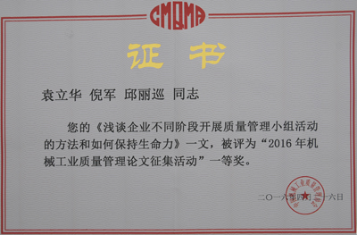 本次會議由中國機械工業質量管理協會組織,全國上百家企業的200多人參加會議。會上邀請國家工信部領導與行業專家解析了《國家“十三五”規劃》內容和路線圖,介紹了《制造業質量和品牌提升三年行動計劃(2016-2018年)》。各行業質量負責人交流了行業質量管理經驗和企業落實機械工業“十三五”質量規劃行動舉措、方法,同時對全國機械工業質量管理優勝論文進行了評選和表彰。東華集團的《淺談企業不同階段開展質量管理小組活動的方法和如何保持生命力》及《以質量為核心,化“危”為“機”,創建國際知名品牌》兩篇論文分別獲得一等獎和優秀獎。