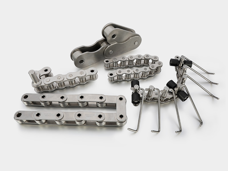 典型產品:不銹鋼短節距滾子鏈、不銹鋼雙節距滾子鏈、不銹鋼空心銷軸鏈、不銹鋼輸送鏈、冷飲加工輸送鏈、香腸生產線輸送鏈、有色金屬冶煉輸送鏈等及附件。